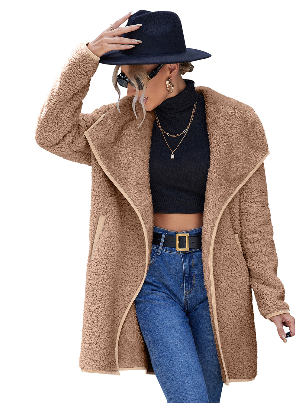 Lapel Irregular Medium Length Double Sided Plush Coat Furry Windbreaker Coat Women
